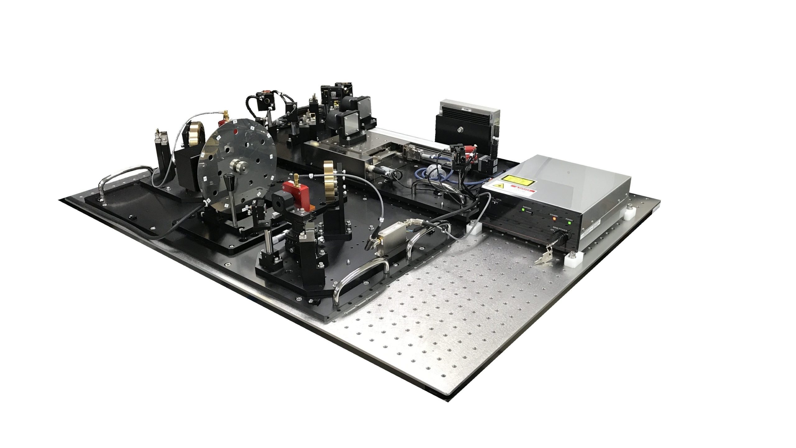 使用する光学部品および制御部品は、TeraProspectorに搭載しているものと同等のものを使用しており、防振ユニット上に光学部品ユニットと制御ユニットおよび制御用PCから構成されます。